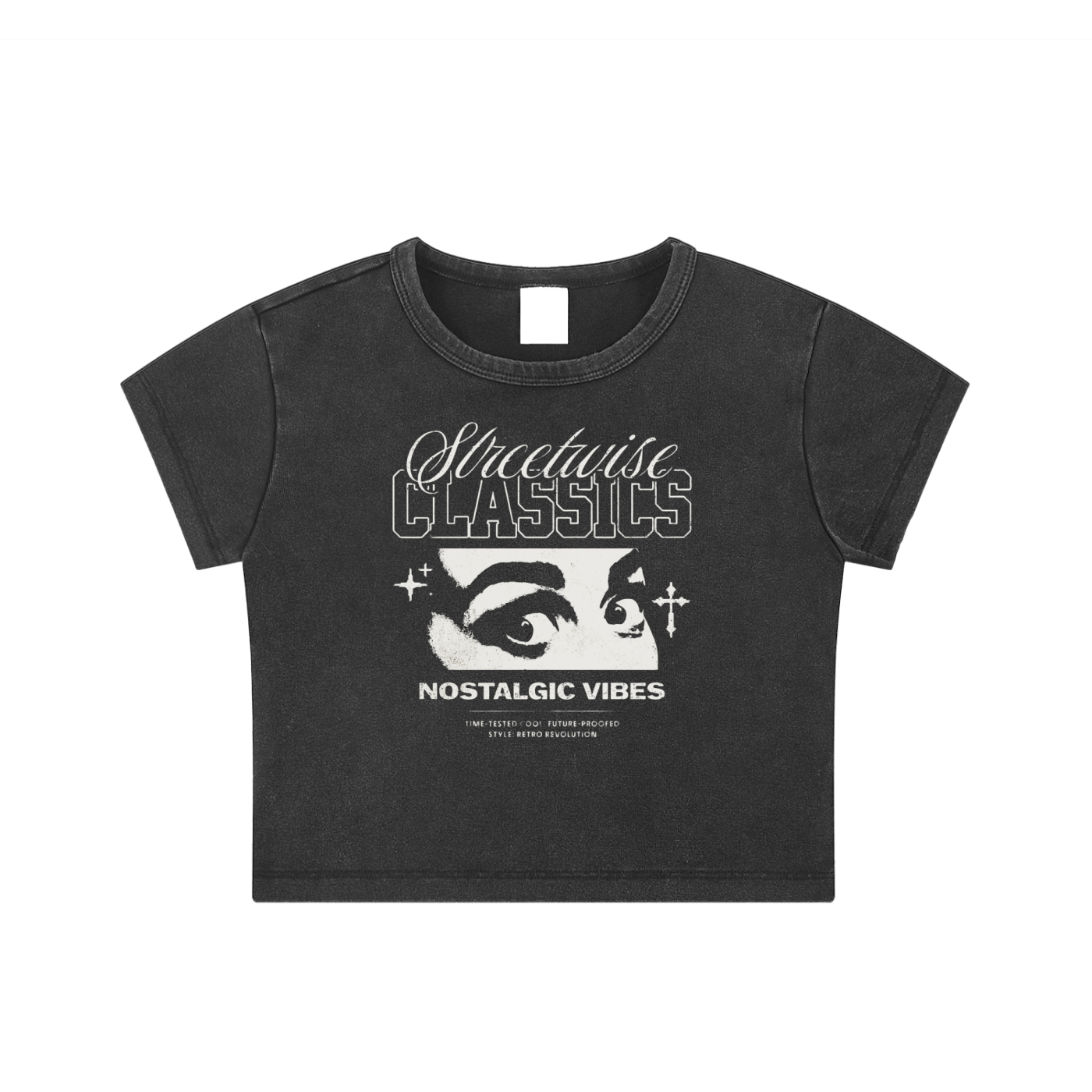 Women’s Stylish and Trendy Crop Top with a Snow Washed material Design.
